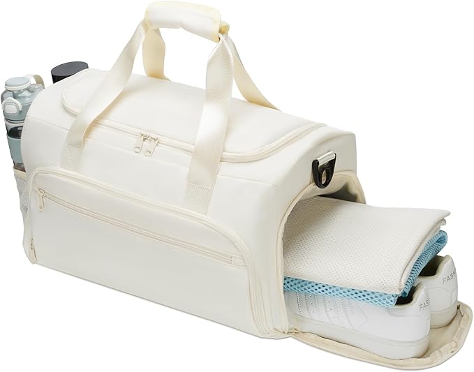 “This gym duffel is just what I needed. Spacious enough for clothes, shoes, and my shaker bottle. The separate wet pocket is a huge plus after workouts. Stylish, durable, and super practical!”