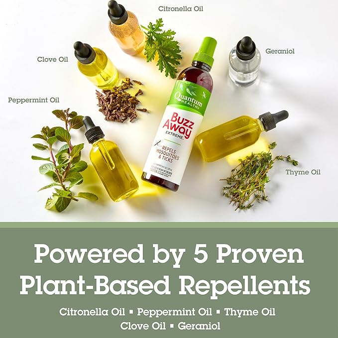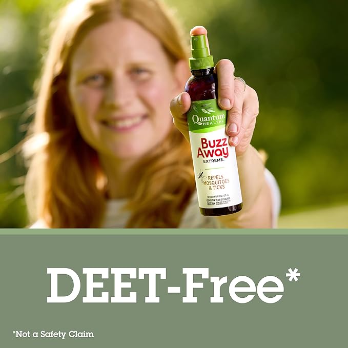 Quantum Health Buzz Away Extreme Tick & Mosquito Repellent DEET Free Peppermint & Citronella Oil Outdoor Bug Spray Powerful Plants Repel Bugs Off Your Skin, Kids Safe Insect Repellent- 8 Ounce