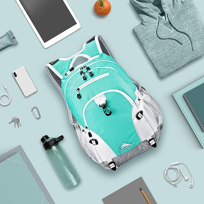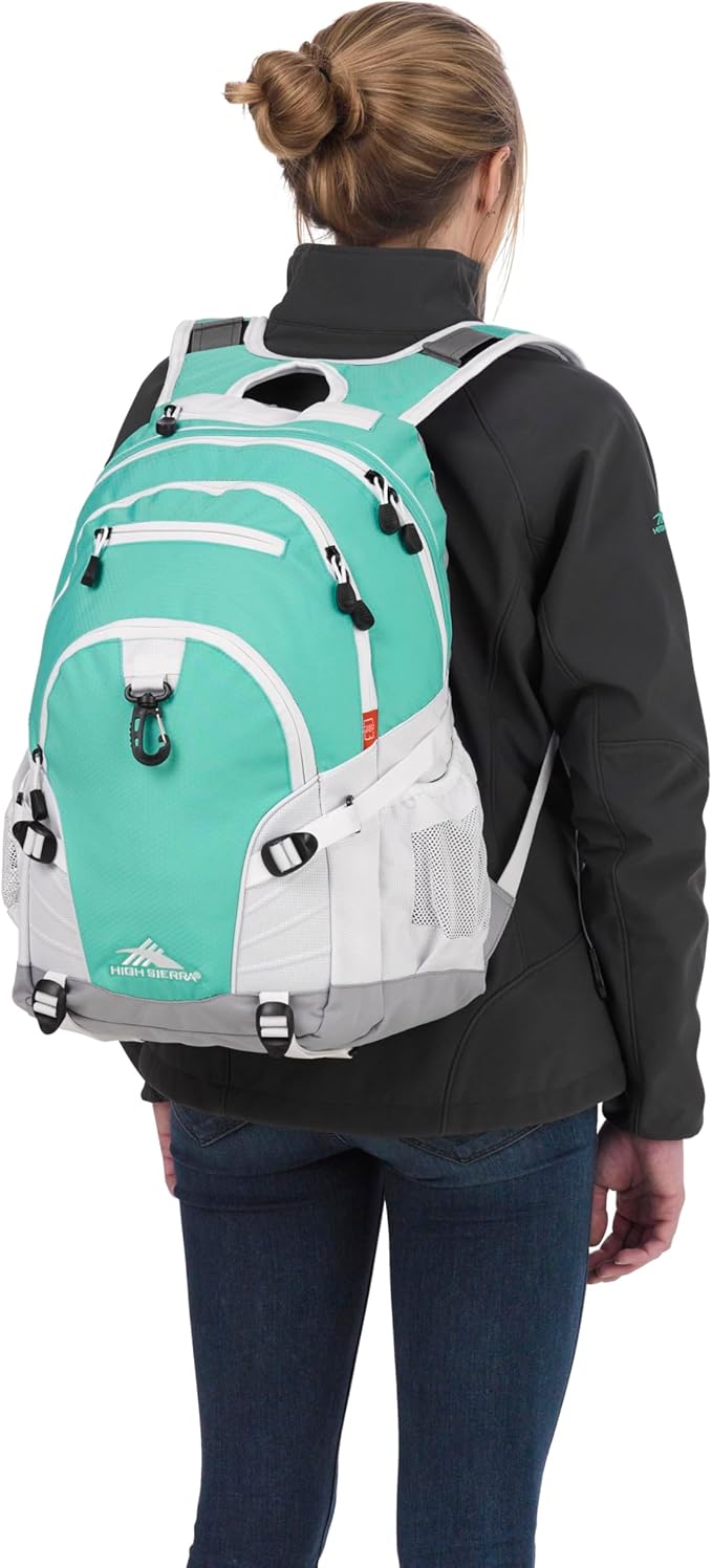 High Sierra Loop Backpack, Travel, or Work Bookbag with tablet sleeve, One Size, Aquamarine/White/Ash