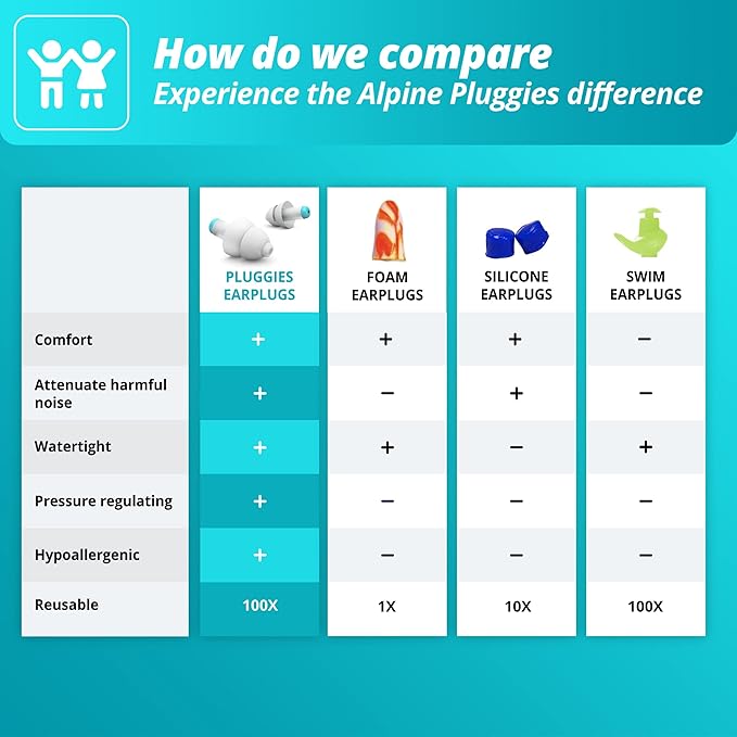 - MULTI-PURPOSE | Sleep, School, Flying, Swimming, Events, Fireworks: Pluggies provide the ideal hearing protection for kids in any situation.