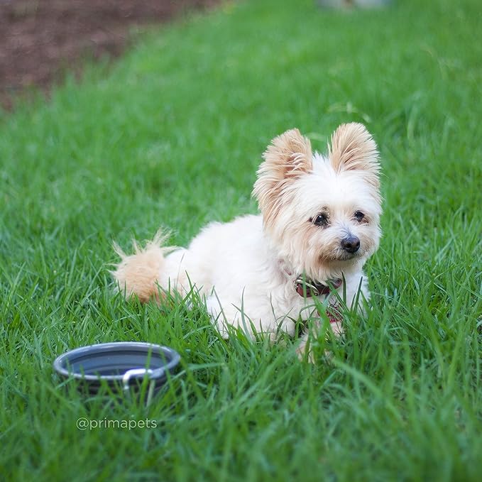 Prima Pet Collapsible Silicone Water Travel Bowl with Clip for Dog and Cat, Portable and Durable Pop-up Feeder for Convenient On-The-go Feeding - Size: Small (1.5 Cups) Grey
