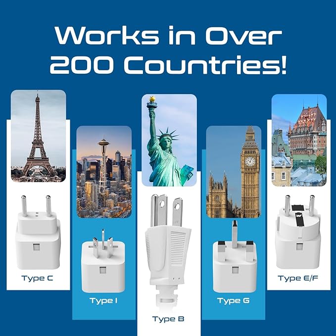 - Fast charge travel voltage converter - Ceptics power converter 220v to 110v features 3 USB-A (2.4A) ports and 1 USB-C port with PD 18W Fast Charge, powering up your device up to 75% in 45 minutes making it more efficient than regular travel adapters with slow charging speeds.