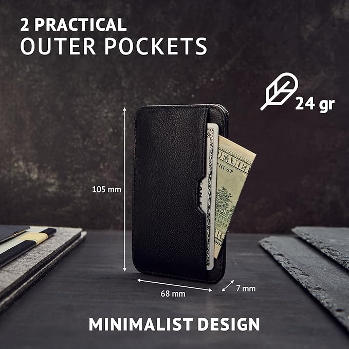 - Carry more with less bulk - Despite its ultra-slim profile, the wallet holds up to 8 cards across three pockets, making it ideal for daily use without adding bulk to your pocket. Compact and lightweight: 105 x 68 x 7 mm (4.13 x 2.68 x 0.28 in); Weights just 24 g (0.85 oz)