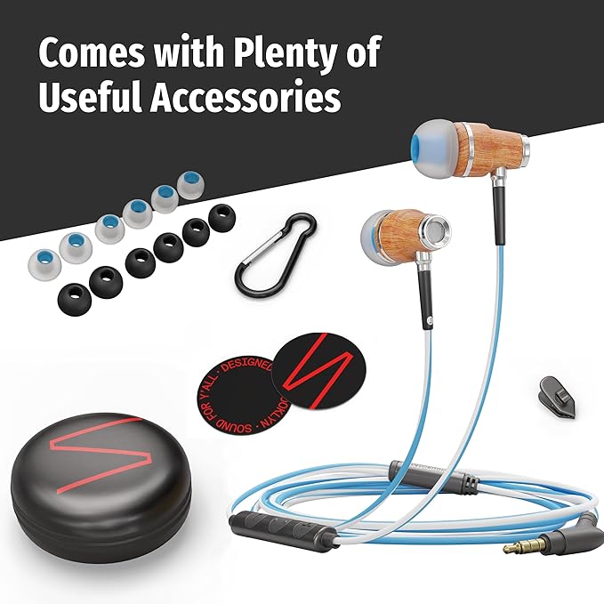 Symphonized NRG 3.0 Wired Earbuds with Microphone, Wooden Phone & Laptop Headphones, 90% Noise Cancelling Corded Earphones with 3.5mm Jack (Blue)