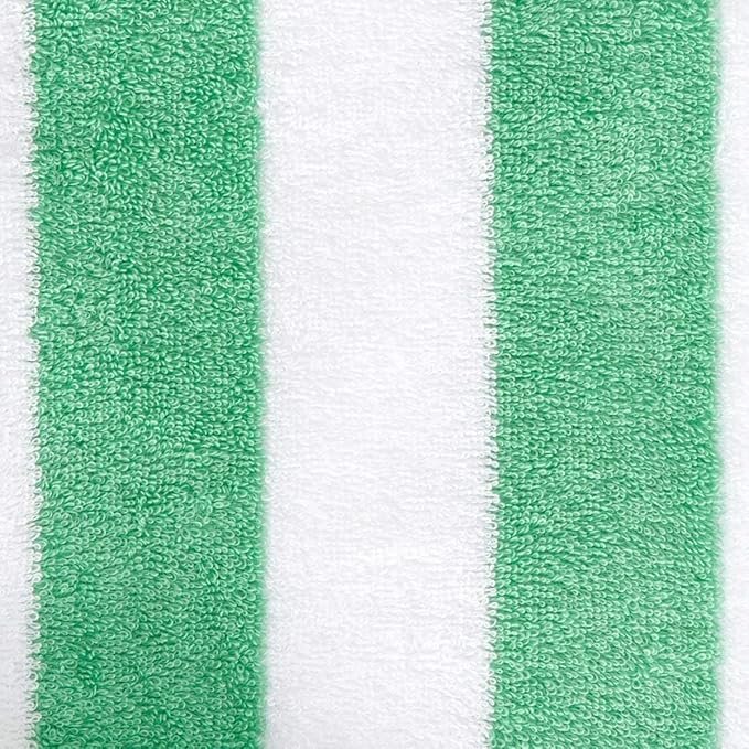 Amazon Basics 100% Cotton Terry Cabana Stripe Pool & Beach Towel, Soft & Absorbent, Quick Drying, Large, 2-Pack, Green, 30" x 60"