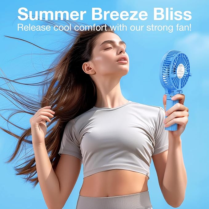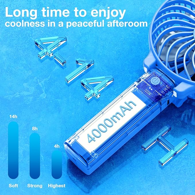 VersionTECH. Portable Handheld Fan, Powerful+Durable+4000mAh+180° Foldable, Mini Table Fans with USB Rechargeable Battery Operated Cooling Accessories for Personal Use, Travel, Office Blue