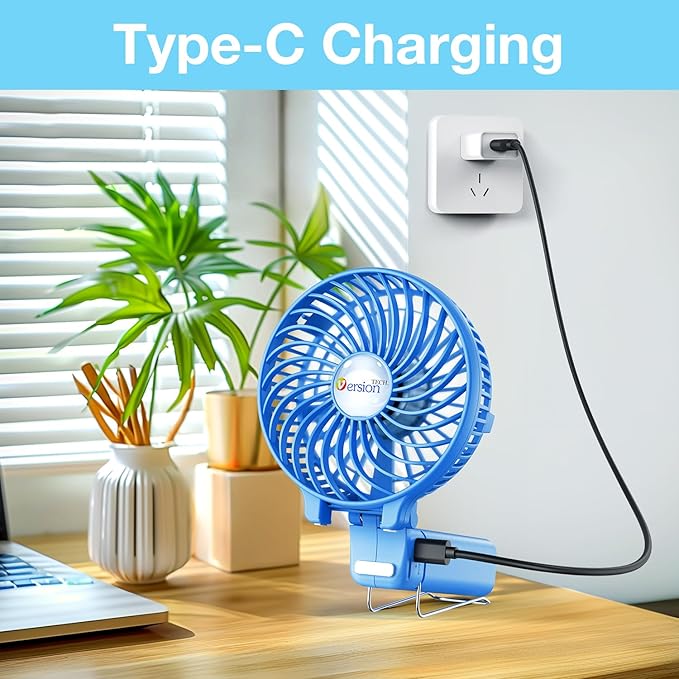 - ↩️【FOLDABLE& MULTIPURPOSE DESIGN】: The mini desk fan can fold up to 180°.You can use this fan: ①hold it on your hand, ②put it on the table, ③hang it on the sun umbrella, ④clip it on other objects; If you don't know how to use it, please look at the picture or contact us. If you find better uses, you can also tell us.
