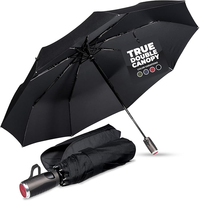 - SUPERIOR WIND RESISTANCE: Engineered with a true double canopy frame and vented design, the BLACK TRAVELER 45 FX2 withstands powerful gusts without inverting. Its heavy-duty nine-rib steel frame and tri-fold shaft provide maximum durability, ensuring you're protected during the harshest storms.