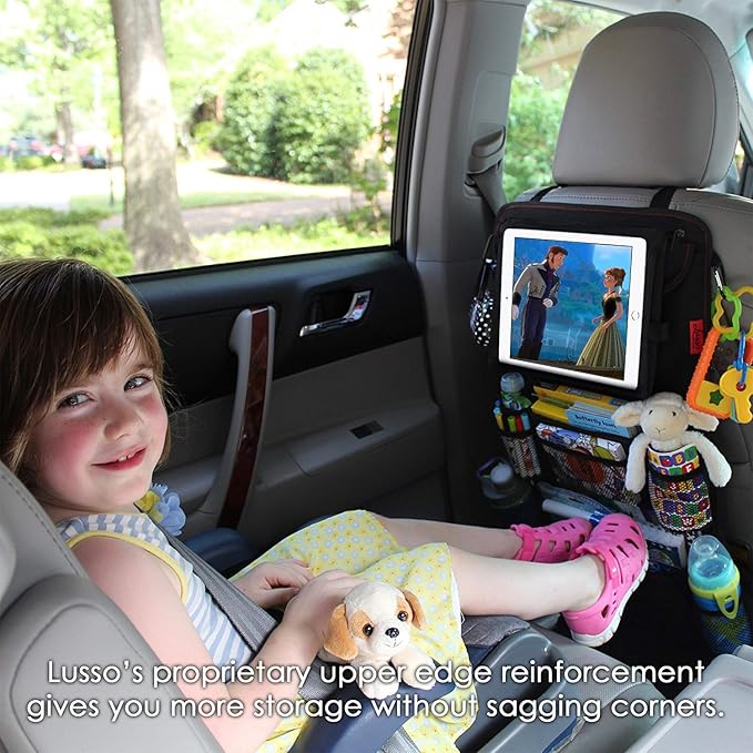 - Keep Your Car Organized: It’s easy to create a mess in the car, especially when you have kids who want to bring toys on every trip. Now you can keep everything organized with Lusso’s Backseat Car Organizer, which keeps your car in perfect order.
