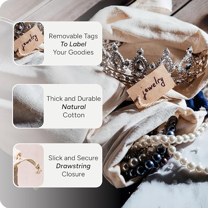- Multipurpose Zero Waste Cloth Bags - Designed with everyday use in mind, our reusable cotton grocery bags are great bulk bin bags for toy storage, sachet bags, beach bags, and storing jewelry bags. Can also be used for culinary purposes like storing herbs or spices or straining yogurt like cheese cloth, juice, nut milk bags