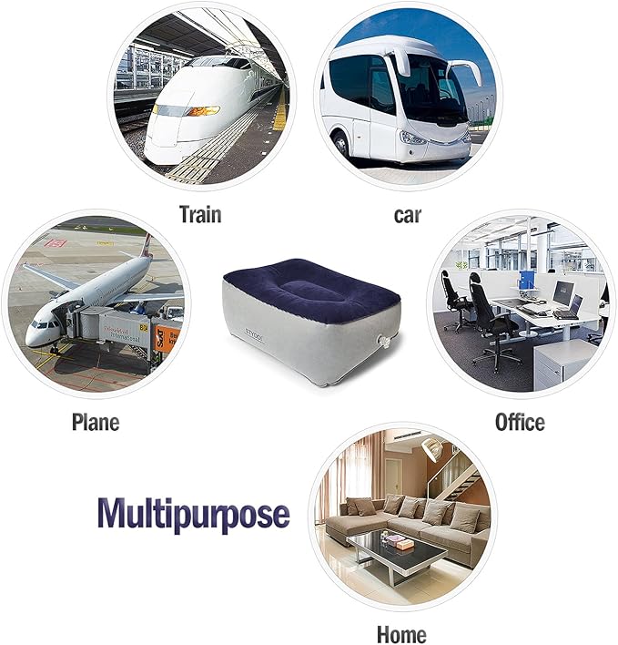 - Ideal for Multiple Occasions - The inflatable foot rest pillow supports your legs stretching or curling at the office under desk, in car, train or airplane. It provides much comfort to you in sitting for long period of time through elevating your feet and legs. It 's a perfect companion for not only your trips in filght or travel, but also your home or office relax accessories.