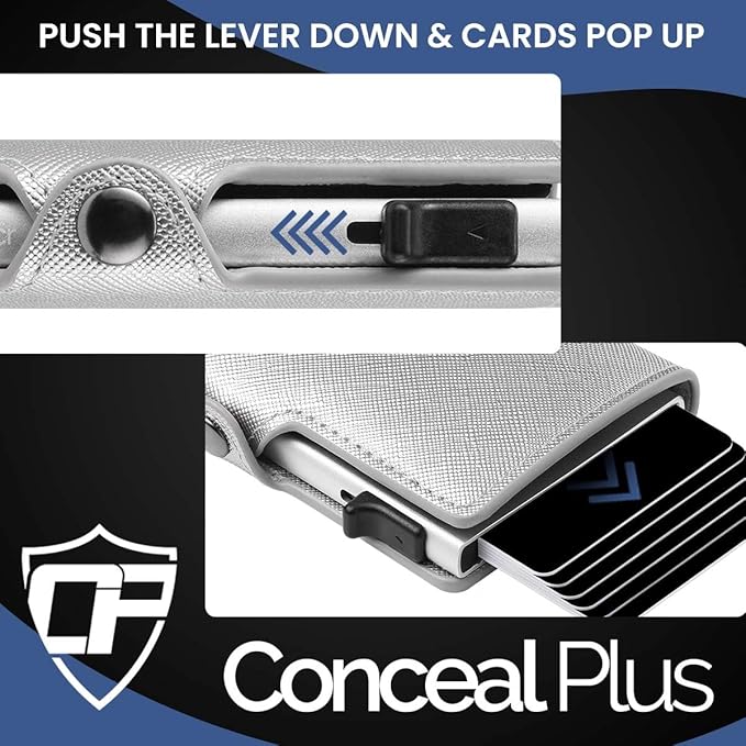 - QUICK ACCESS TO CARDS: Slide the side lever & credit cards cascade up but are held securely in the card case. Quick and easy access to your most important credit and debit cards.