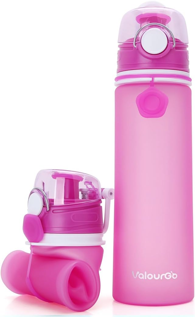 Valourgo Collapsible Water Bottle, Silicone Foldable with Leak Proof Valve BPA Free, Aqua Blue, 21 oz