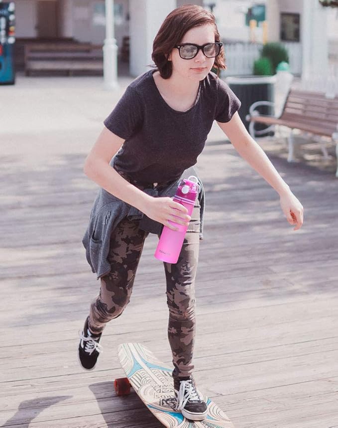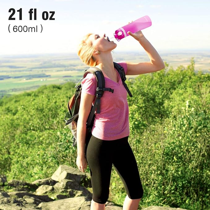 - STYLISH AND PORTABLE - This unique travel water bottle has 4 eye-catching colors available. Perfect for outdoor use such as camping, traveling, gym, biking, hiking, running, yoga, exercise, work, and school.