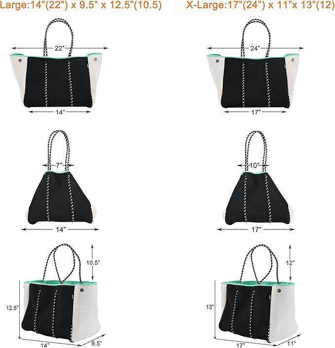 - FASHIONABLE AND ELEGANT: Using the high-quality neoprene and polyester material, unique classic design style, these beach bags look particularly stylish and elegant. The same bag can be changed three styles, you have three options only pay a bag. Please look at the picture and make your choice.