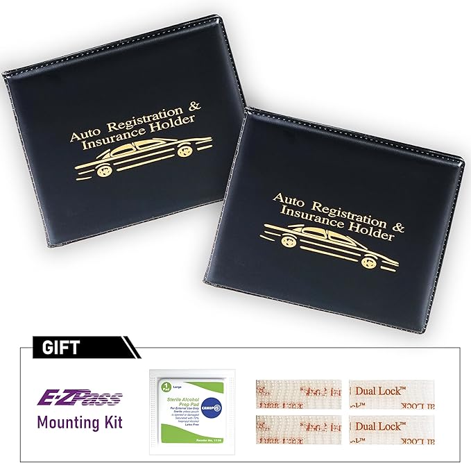 CANOPUS Registration and Insurance Card Holder, Car Document Holder, Wallet for Auto, Trailer, Truck - 2 Pack with EZ Pass Mounting Kit, Ez Pass Strips
