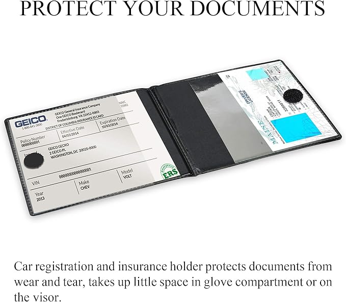 - Car registration and insurance wallet protects documents from wear and tear, takes up little space in glove compartment