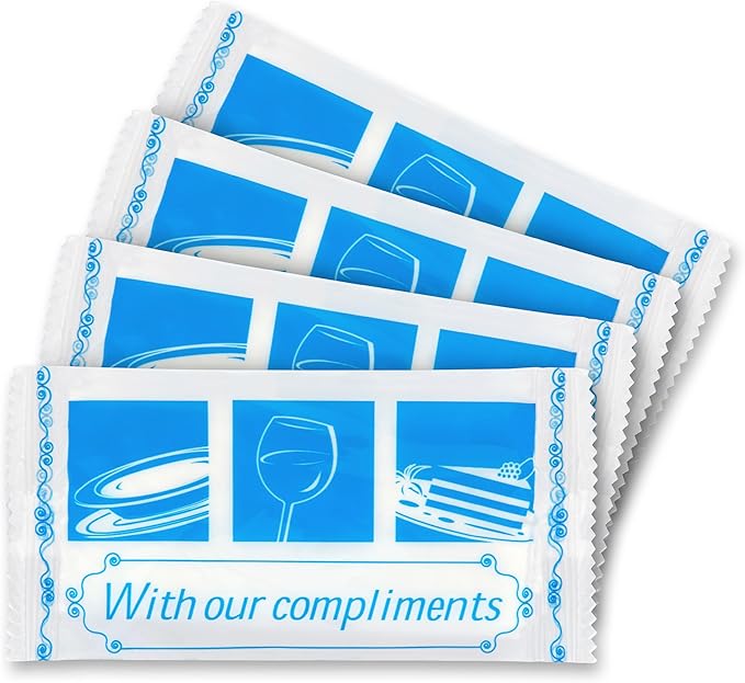 - MULTI-USE: Wet naps individually wrapped are ideal for personal, household, or commercial use. "With Our Compliments" packaging design makes these individual wipes ideal for restaurant use.