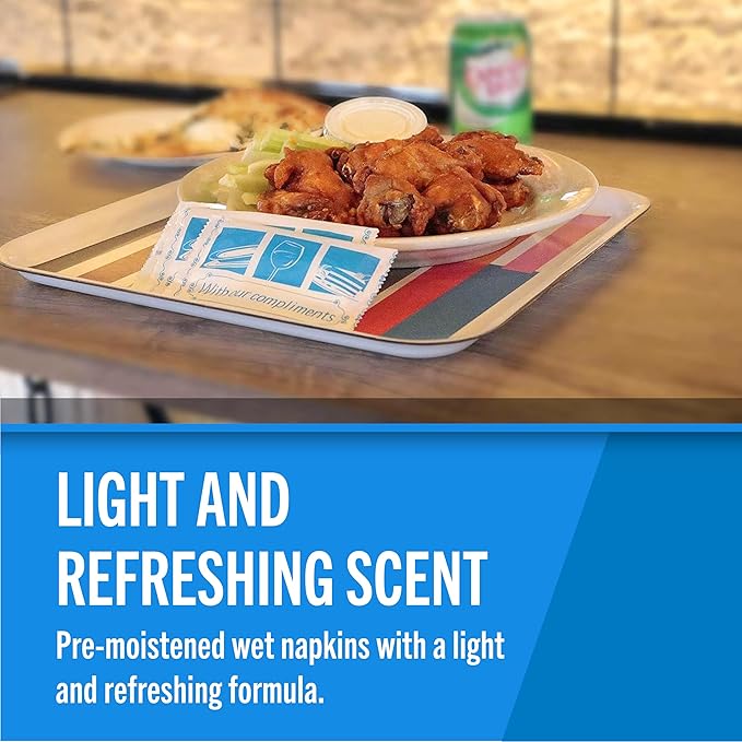- LIGHT AND REFRESHING SCENT: Wet naps that feature a pleasant scent. These pre-moistened wipes will leave hands feeling refreshed after messy meals like ribs, chicken-wings, lobster, and other finger foods.