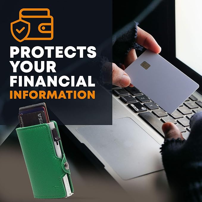 Card Blocr Womens Slim Wallet for Small Purses, Pop Up Wallet with Anti Theft RFID Blocking Credit Card Holder for Women in Green PU Saffiano Leather