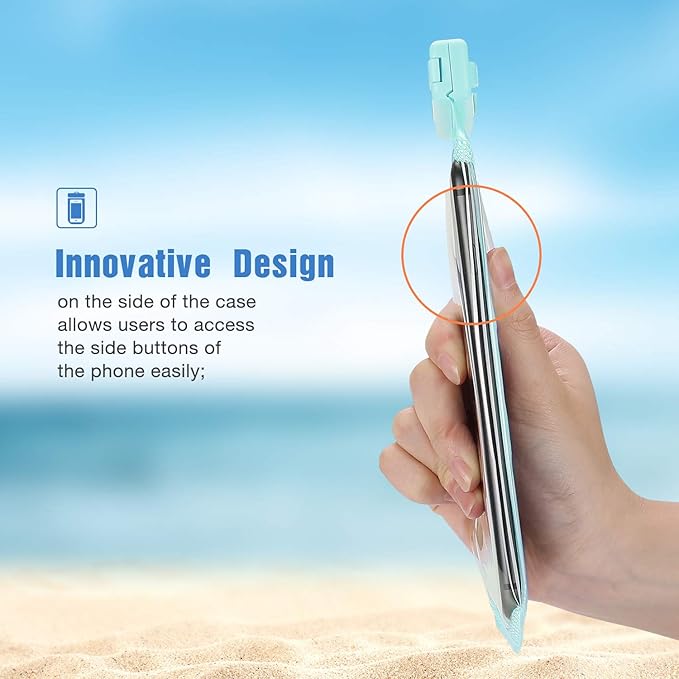 - Innovative design on the side of the pouch allows users to access the side buttons of the phone easily; Clear Window on both front and back sides, perfect for taking pictures, videos and checking emails