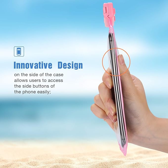 - Innovative design on the side of the pouch allows users to access the side buttons of the phone easily; Clear Window on both front and back sides, perfect for taking pictures, videos and checking emails