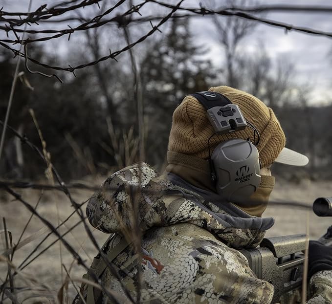 - HIGH PERFORMANCE - This digital muff boasts an ergonomic headband, enhanced with rubber bumpers for added durability, and fewer cup holes for improved NRR; Enjoy hassle-free operation with auto shut-off, low battery warning, and intuitive voice prompts