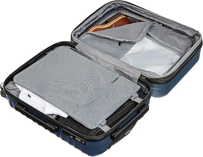 Amazon Basics 21-inch Carry On Luggage, Suitcase With Wheels (8 Spinner Wheels), TSA Lock, Expandable Capacity, Interior Divider and Pocket For Dry and Damp Clothes, Navy Blue