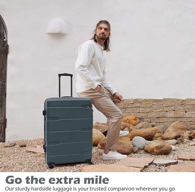 - The suitcase benefits hugely from its ABS+PC hard plastic shell. it goes through insanely strict quality control test standards, creating strong and sturdy pieces that can withstand any forms of rough handling.