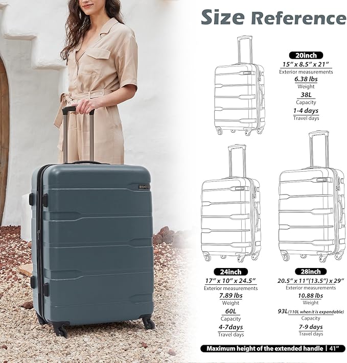 - Three different size: Size: 20inch (21 x 8.5 x 15), 24inch (17 x 10 x 24.5) 28inch (20.5 x 11x 29), Please note that ONLY 28in is Expandable, adding 15%to the scalable space.