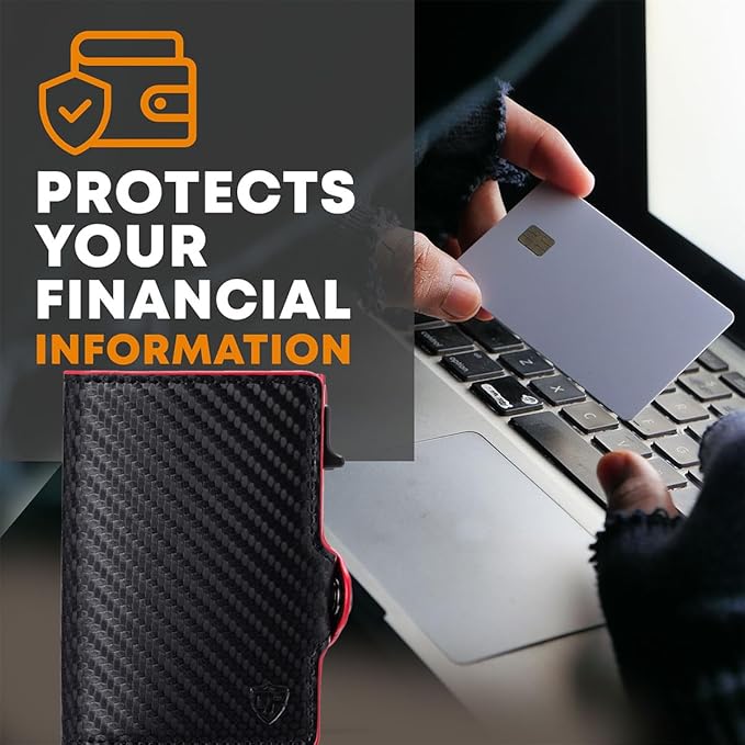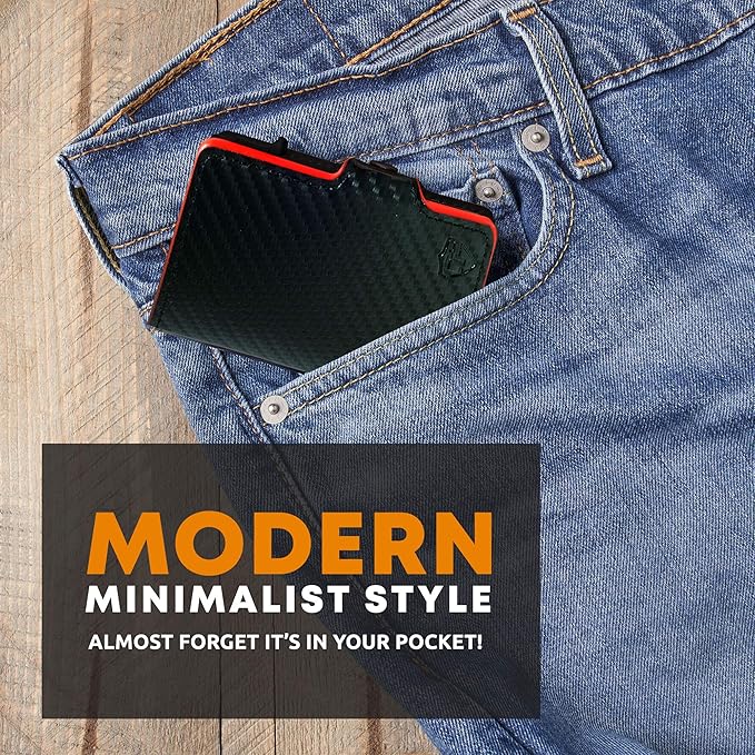 Card Blocr Pop Up Credit Card Wallet, RFID Blocking Credit Card Holder for men, Cool Wallets for Men in Carbon Wallet Design, Compact Card Holder Wallet for Secure Storage (Red PU Carbon Fiber)