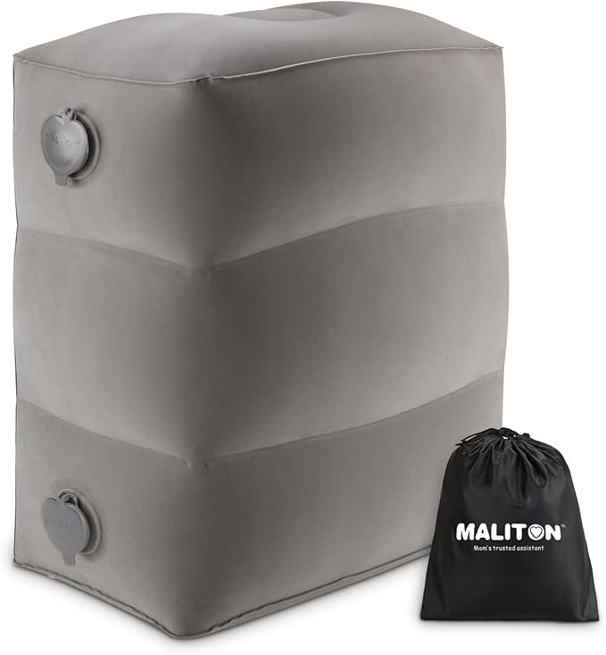 Inflatable Travel Foot Rest Pillow, Kids Airplane Bed, Adjustable Height Leg Pillow for Air Travel, Make a Flat Bed for Kids and Toddlers, Great for Airplane, Train, Car(Grey, 1 Pack)