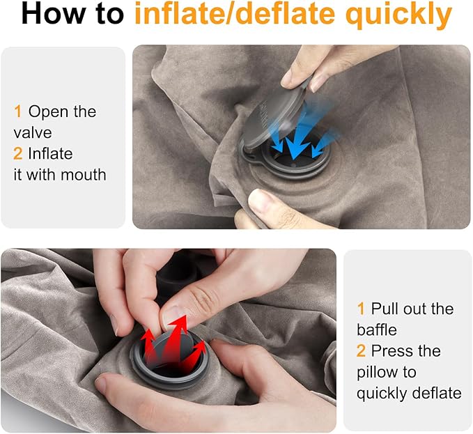 - No Airpump Needed: We tested. Blowing it up with mouth is faster than using a manual pump and it takes away the hassle of bringing a pump and making noise in flight.