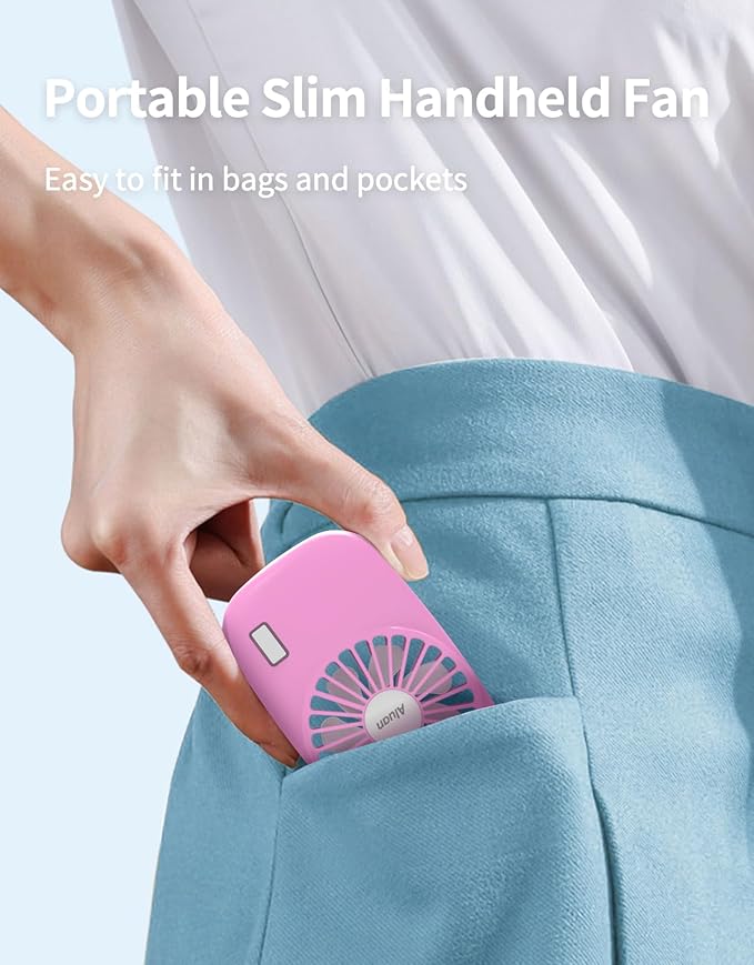 Aluan Handheld Mini Fan Powerful Small Personal Portable Speed Adjustable USB Rechargeable Eyelash Fan for Kids Girls Boys Woman Man Home Office Outdoor Travel, Pink
