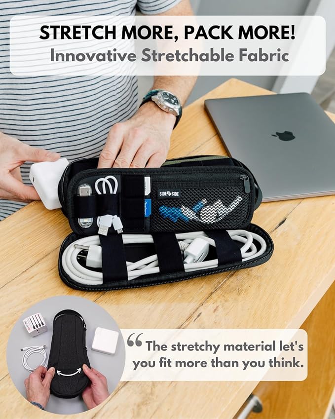 - STAY CHARGED, STAY READY IN COLLEGE – No more tangled messes in your bag—this compact case stores cables, adapters, and power banks with ease. The structured design protects gear, while mesh pockets and elastic loops keep it all visible. Perfect for students juggling classes, group projects, and weekend road trips.