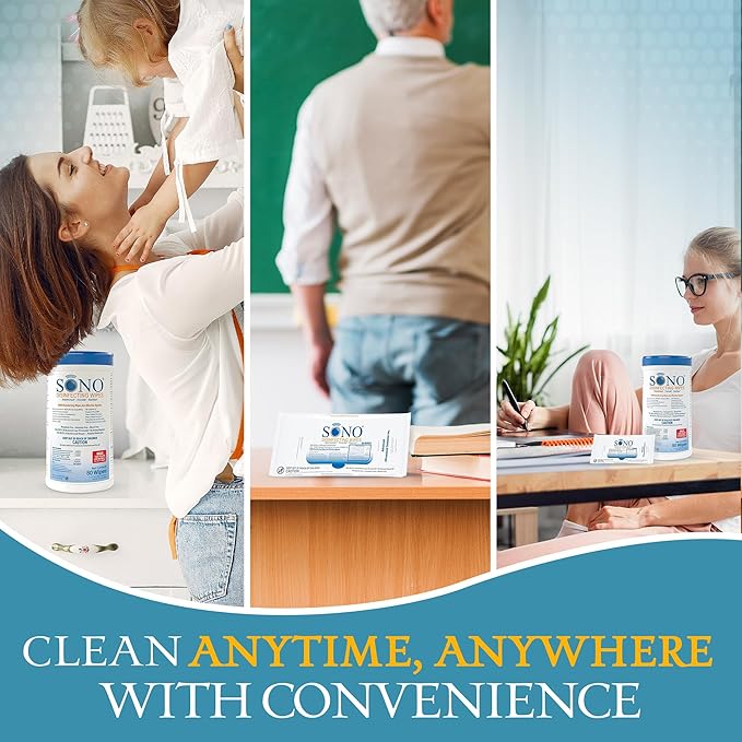 SONO Disinfecting Wipes - 80 Count (Canister of 1) and 60 Count (Pack of 3) + Sanitizer, Medical-Grade, Alcohol-Free, No Bleach, Gentle & Effective Multi-Surface Cleaning Solution