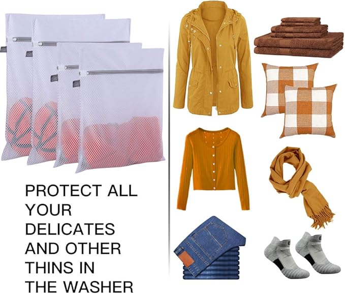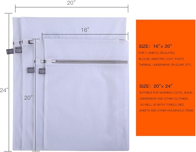- 【4-Piece Set】2XL (20x24") & 2L (16x20"), This laundry bags mesh wash bags combination meets most household washing needs, suitable for clothes, knit hats, scarves, bras, sheets, socks, and more