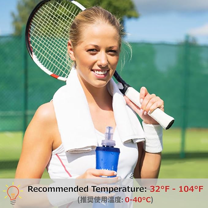 - Safety Commitment: Made from food-grade TPU material, 100% free of BPA and PVC, odorless. It features a leak-proof bite valve design. Simply gently bite the soft part of the mouthpiece and squeeze the soft running water bottle to easily drink water