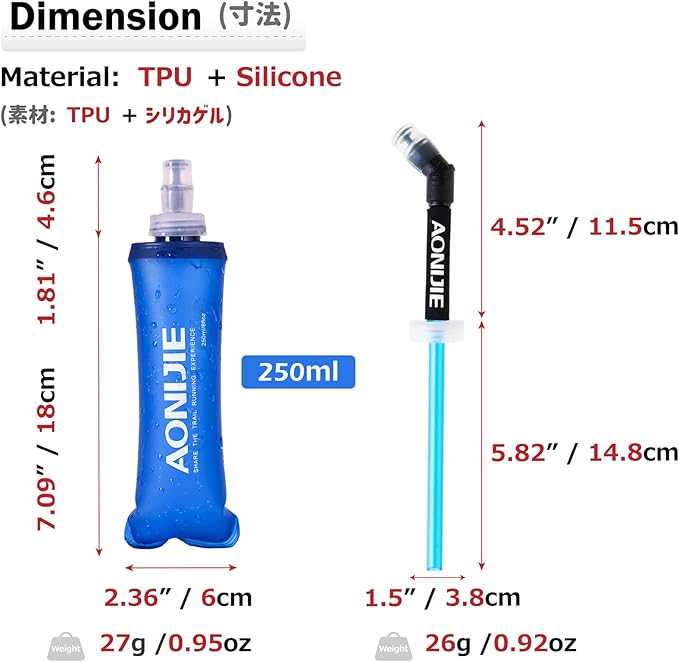 - Space-saving: The soft flask is compact and durable. When filled, the bottle stands upright and shrinks to reduce movement while drinking. Once the water is consumed, it can be folded into a compact size and stored in your pocket