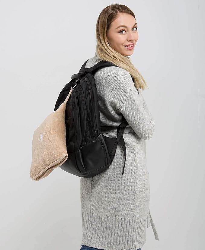 - Backpack clip included in the package: With the backpack clip / carabiner, you can clip this blanket pillow to any backpack or to any other luggage - with the soft beige travel blanket. Both the beige travel blanket and the pillowcase/pouch are washer and dryer safe.