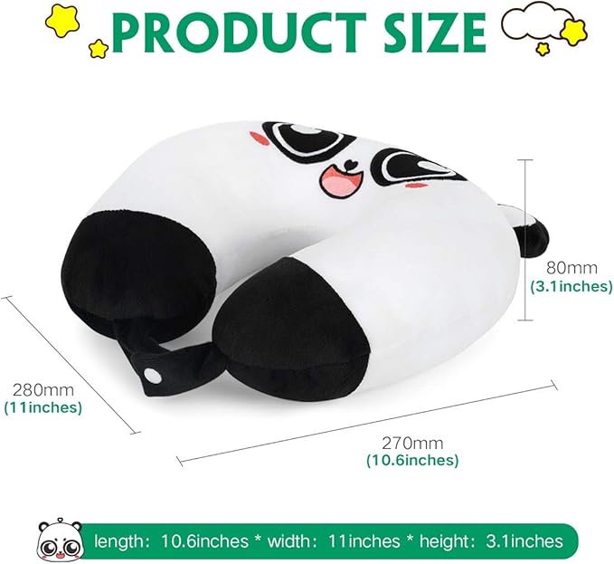 H HOMEWINS Travel Pillow for Kids,Cute Animal Neck Pillow for Boys Girls,Soft Neck Head Chin Support Pillow,Travel Accessories for Airplane, Car, Train,Recline (Big Eyes Panda)
