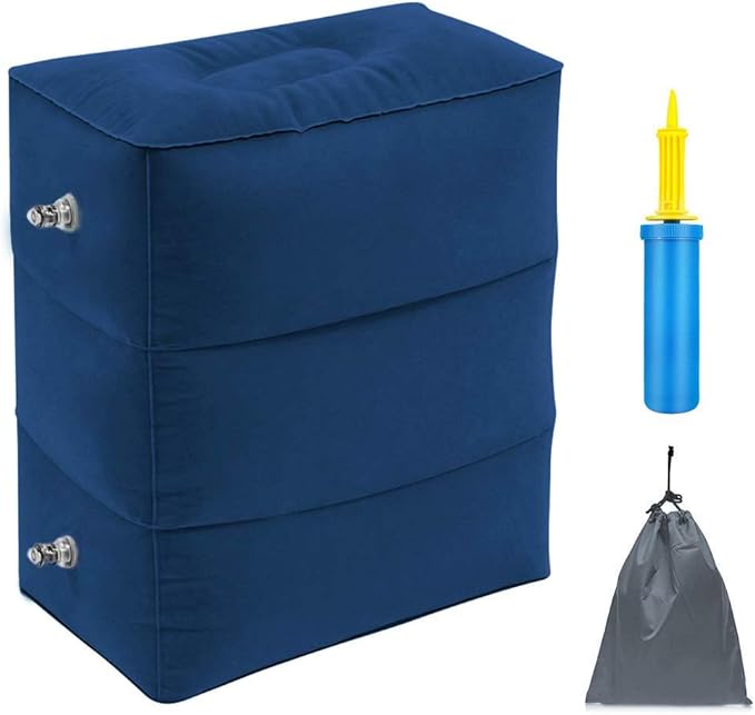 ZIQIAN Inflatable Travel Foot Rest Pillow Portable Adjustable Three Layers Height Foot Stool for Airplanes, Cars, Home, Trains, Office to Lay Down or Sleep on Long Flights with Pump(Blue 1PACK)