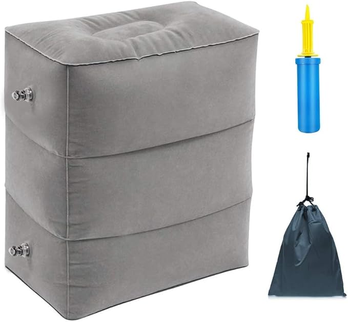 ZIQIAN Inflatable Travel Foot Rest Pillow Portable Adjustable Three Layers Height Foot Stool for Airplanes, Cars, Home, Trains, Office to Lay Down or Sleep on Long Flights with Pump(Gray 1PACK