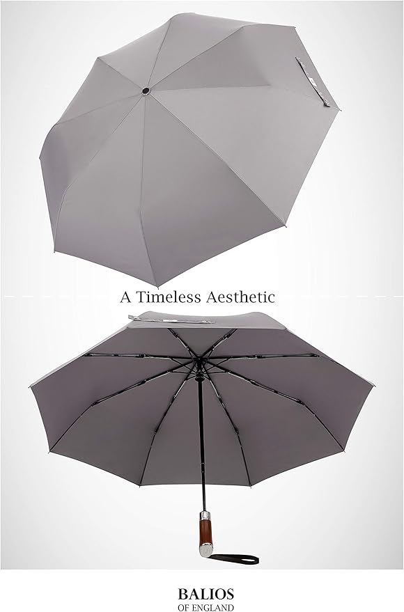 Balios (Designed in UK) Travel Umbrella Luxurious Golden Hardwood Handle Auto Open & Close Windproof Frame Single Canopy Automatic Folding Umbrella Men's & Ladies
