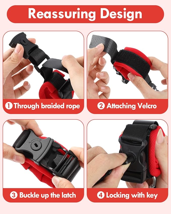 - Maximum Safety for Your Little Ones: Our anti lost wrist link upgrades with a safer key lock - only be opened by the key at one end of the parents' wrist, and the widened metal head makes it difficult to be cut off