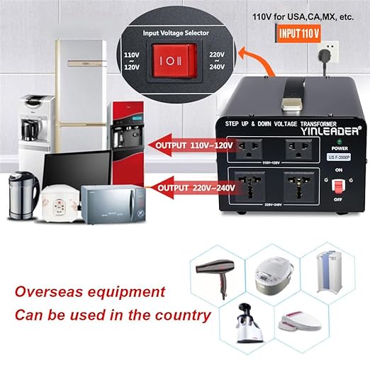 Yinleader 3000 Watt Voltage Converter Transformer Step Up 110V to 220V or Step Down 220V to 110V Power Converter Adapter for use in The United States for European and Asian Household appliances