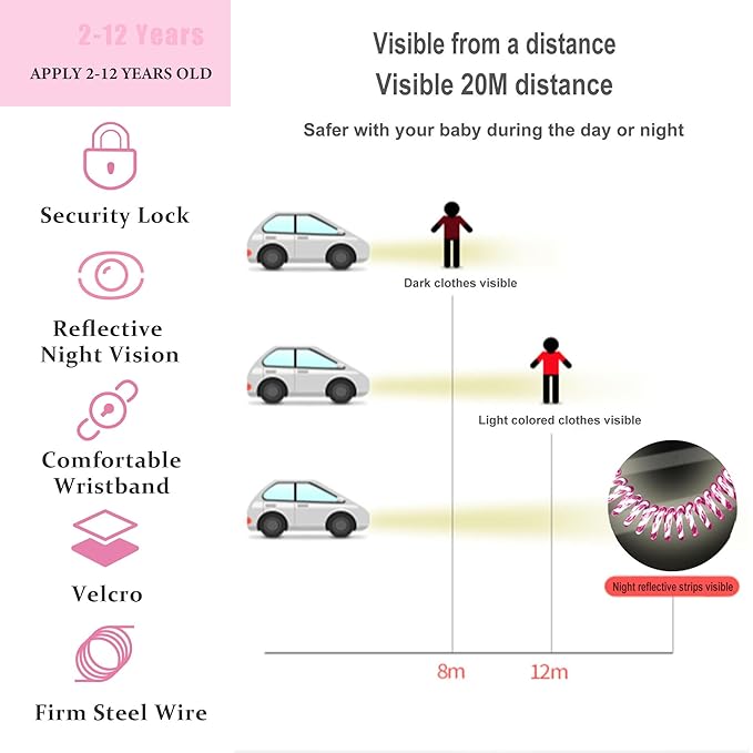 - 【Multiple colors and lengths】Includes anti-lost seat belt lock straps in pink, blue,orange and cyan. With an adjustable wrist strap for adults and children, you can connect your anti-lost belt to your backpack, shopping cart or stroller. Suitable for use in parks, plazas, supermarkets, playgrounds and crowded places.