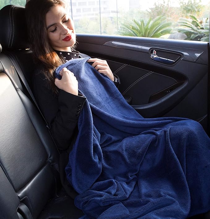 - Special Feature : Big Blanket - A couch throw blanket for the home that is machine washable. It retains its form and does not shrink after multiple washes., Long Flight Essentials: The Navy Blue travel blanket can be used as a 2-in-1, as a pillow or a blanket, for plane travel., Road Trip Essential - Airplane blankets are also offered as a great travel gift, packed with carabiners and hand baggage belts, which can be used on long flights and road trips., Soft Blanket - Stadium blanket with a carabiner for portability can also be used as a car blanket or couch blanket while watching TV or movies., Travel Bag - Both the blanket and the travel bag weigh less than a pound, which is easily portable and can be used as road trip essentials for adults, men, and women Big Blanket - A couch throw blanket for the home that is machine washable. It retains its form and does not shrink after multiple washes., Long Flig… See more