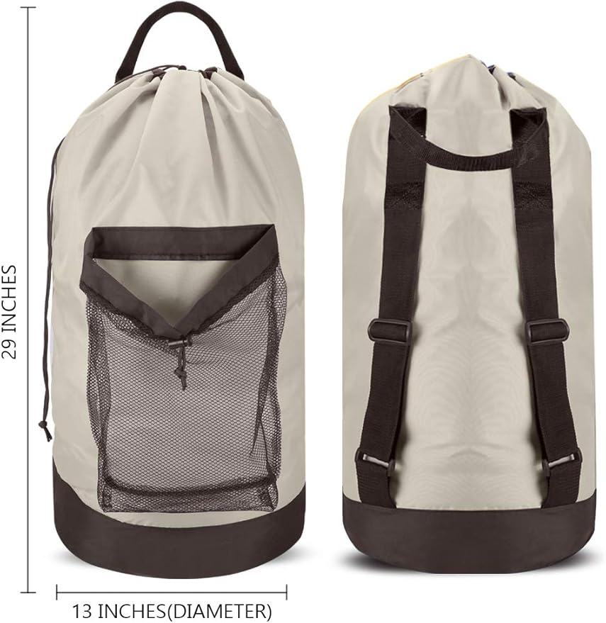 - LAUNDRY CAPACITY - Measures 13"(diameter) x 29", this size is big enough for holding 2-3 loads of laundry. Perfect capacity for laundromat use or family use. Note: Tight a knot over the drawstring cord lock to ensure nothing lost when the laundry bag is full.