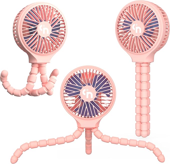 - 【Upgraded Flexible Tripod & Fan Blades】The mini stroller fan with upgraded flexible tripod, which is made of high-quality aluminum rod wrapped in silicone material. You can bent any angle you want. It is easy to clean and will not accidentally fall off or shift after being wrapped around the stroller. Upgraded fan blades, powerful and quiet. It is suitable for your quiet office or reading and your baby to sleep comfortably.
